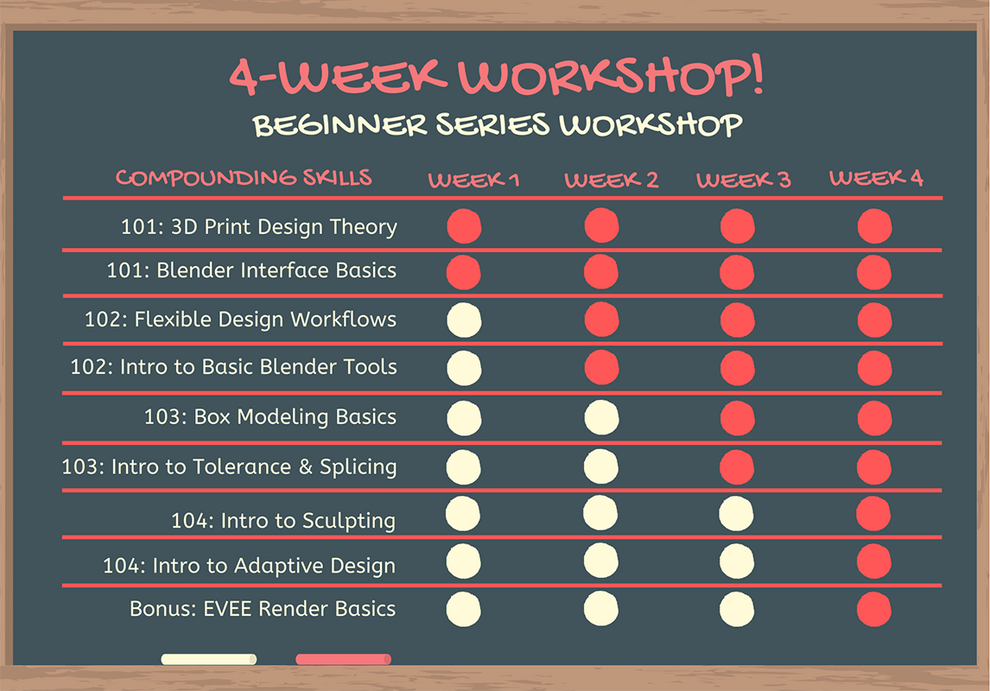 Great start J-Wall and strong finish! Worth every penny."Loved week 1, all information I had to find in several videos online before finding your workshop. Keep spreading the love with blender for 3D printing. Week 2 even better, if I've learned this much in just 2 weeks, can't wait to dive into the next 2. Week 3 continues to live up to the previous weeks of easy to follow tutorials and very exciting projects. I'm looking forward to and disappointed to start the last week of this beginner series. Well here we are, at the end of week 4. This 4 week class was amazing, I learned so much in a short amount of time and the teacher is just great, very patient and easily accessible. Look forward to more training videos and live podcast with you guys! Sad to see it end for me but excited to see it's future for you. Keep living the dream."